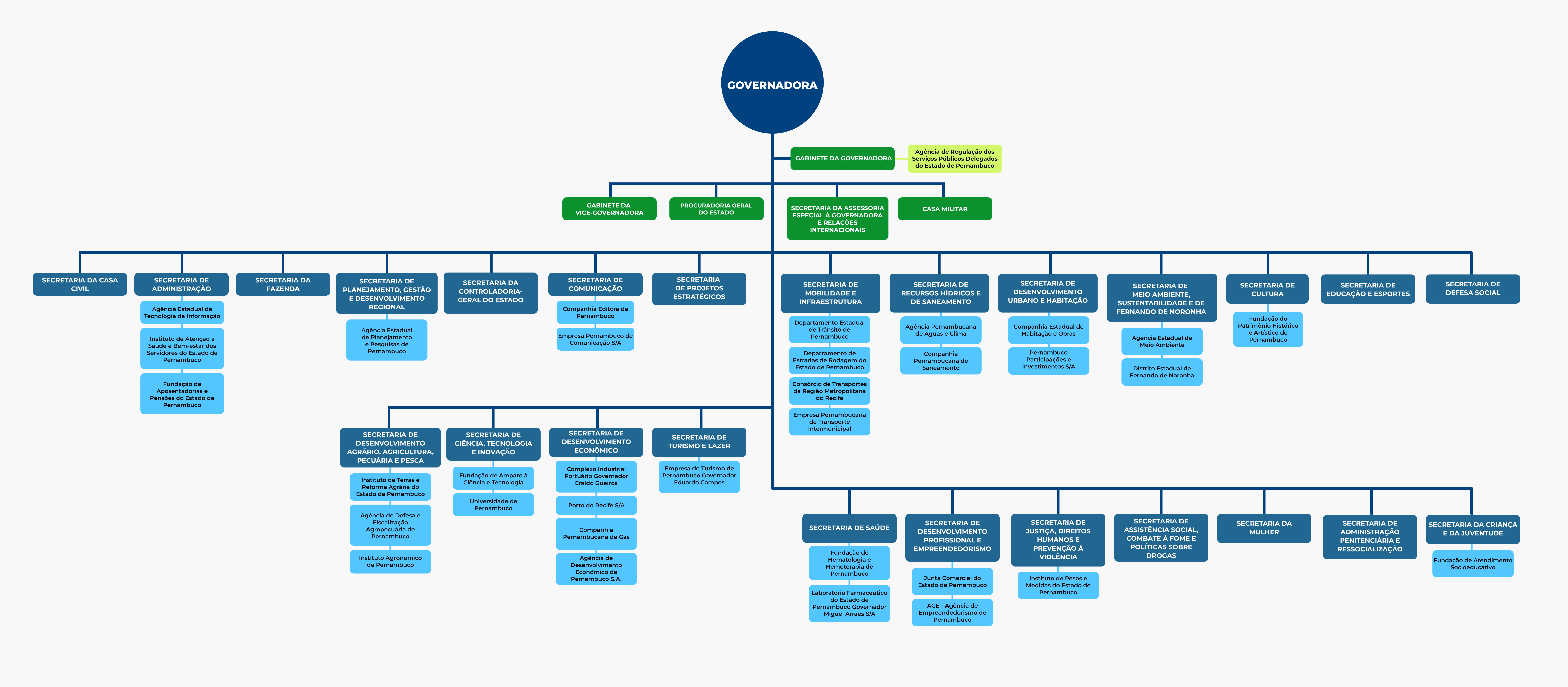 Confira a estrutura e o funcionamento dos órgãos integrantes da estrutura administrativa do Poder Executivo Estadual , de acordo com a Lei Estadual Nº 18.139, de 18 de janeiro de 2023: